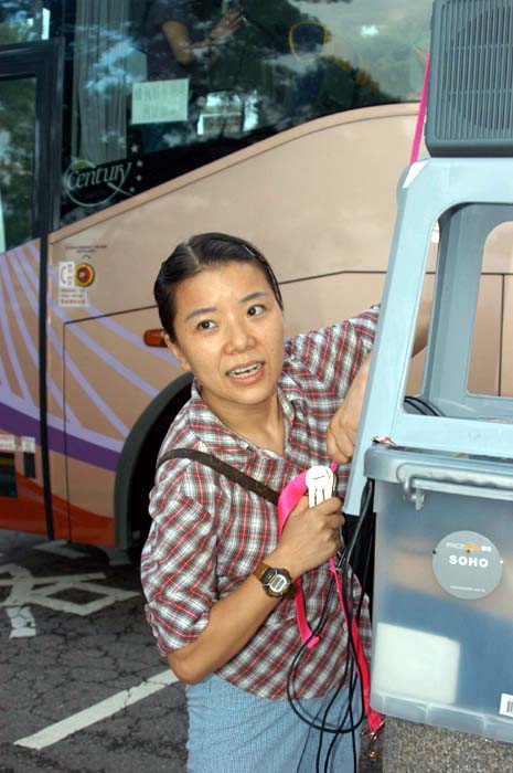 问周胜在“讲真象”点上有没有遇到困难,她说,开始时有一些景点的工作人员不理解,播放“真象”光碟的电视机全被充公,她们到有关部门解释,强调她们没有违反香港的法例,是合法的与游客和市民沟通,只是在极其有限的情况下,才采取这种方式把“真象”公开,希望有关部门能够理解。周胜说:“现在他们越来越理解我们。”