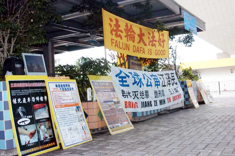 “讲真象”点上挂满了形形式式的图片和横额,也成为“一国两制”下的一大特色。这些“讲真象”点一年三百六十五天,除了台风袭港刮八号风球外,每天都有法轮功学员“欢迎”游客。我们走访了几个地点和访问了几名法轮功学员,探讨他们几年来的坚持,为的是什么?