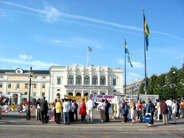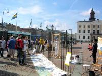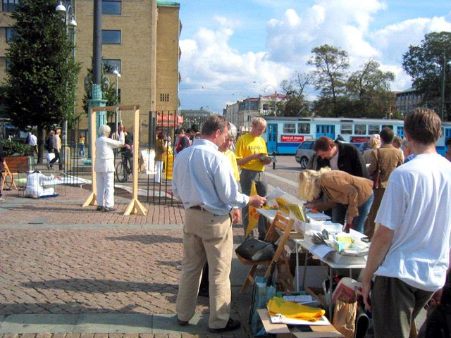 市执行委员会成员可以从位于广场旁边的市议会大楼的办公室窗口看到展览。市执行委员会成员艾里克(Erik J Lithander)先生是一位善良的绅士,他几次参观反酷刑展以表达他的支持。