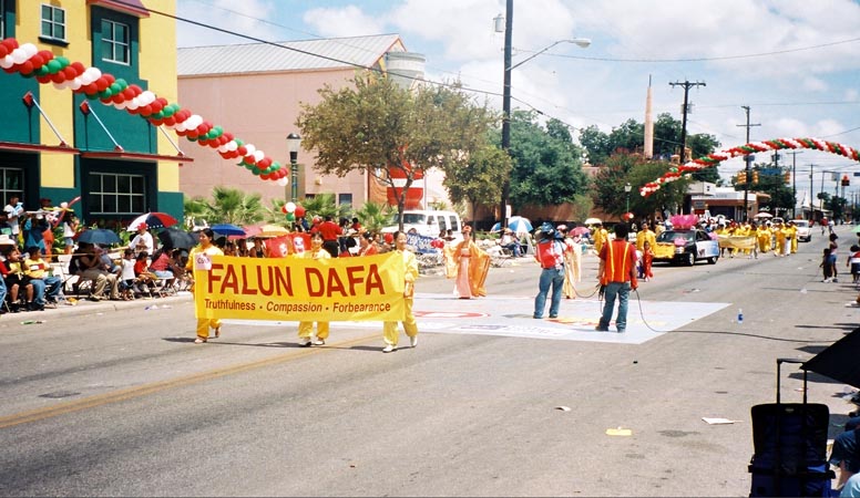 2004年9月4日,来自达拉斯、休斯顿、奥斯汀的大法学员云集圣城,和当地大法学员一起参加了本年度的游行。德州南部虽然炎热,当地民众热情不减。道路两旁的民众不时向大法学员的游行队伍发出阵阵掌声和欢呼声。当地媒体也很关注这次游行,多家媒体现场采访。当地电视台KVDA即时全程播放整个游行过程,并向全美西班牙后裔集中的城市播放。祥和、优美的功法和“真、善、忍”被传到千家万户。