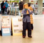 路过大厅川流不息的人们,有的驻足看功法演示及展板,有的与学员交谈了解真象,很多人接资料,不时听到人们说着:法轮大法。