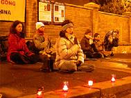 捷克法轮功学员于新年前夕聚集在布拉格的中使馆前,就像全球各地的法轮功学员一样,利用节庆在当地的中使馆前举行和平请愿。