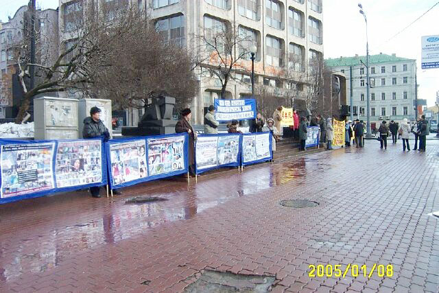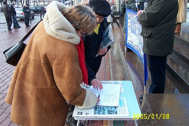 这次活动也遇到了干扰。活动進行近三个小时的时候,突然来了一个不速之客,直接找到值勤警察,公然撒谎,横加指责,说什么“中国没有迫害法轮功,炼法轮功在中国是完全自由的。”法轮功学员善意的向他讲真象,并义正辞严的指出:“你看看这一张张活生生的照片是假的吗?”“全世界许多国家的法轮功学员已把江泽民及其帮凶告上法庭,这铁的事实能否定的了吗?”被学员问的理屈词穷,那人最后干脆耍赖说:“中国杀人关你们什么事儿?在车臣杀人你们怎么不管?!”警察开始站在旁边很鄙视的看着他笑,后来觉得太不象话了,就告诉他:“他们在这里的活动是经过批准的,完全合法的,你不能干扰。”这个人灰溜溜的走了。