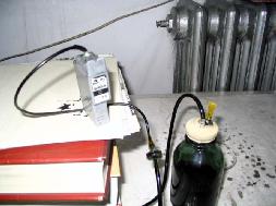 1、 材料:准备一个100-200毫升左右的玻璃瓶,带有橡胶塞子,去医药店买一个一次性使用输液器,两个一次性注射器,其中一个要用最小号的注射器(只用它的针头),一个小漏斗,去电脑城购买大瓶的打印机墨水(约一元钱10毫升)。