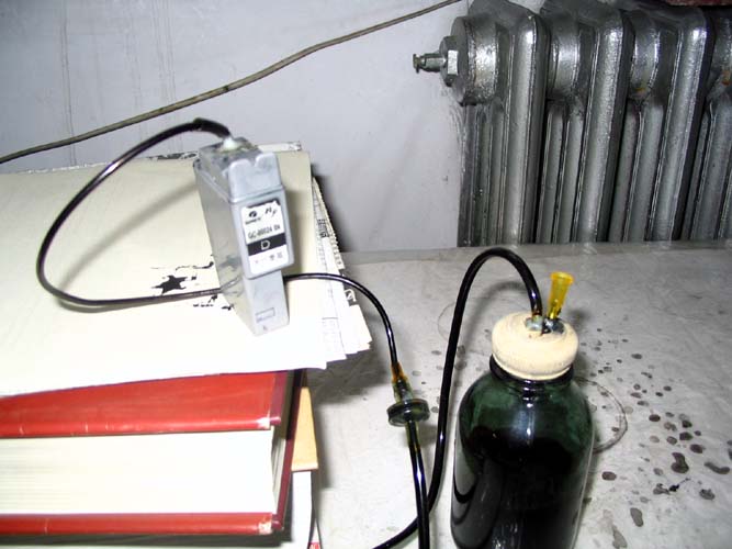 佳能i320打印机价格低廉,性能不错,适合家庭使用,但是由于使用的Bci-24墨盒容量太小,大约不到10毫升,打印真象资料时,必须在旁边仔细看着,一旦出现打印字迹不清晰时,就得及时添加墨水,费时费力。经过仔细观察,并参考Epson等机型连续供墨系统,我制作了i320打印机黑色墨水的连续供墨系统,已经打印了半箱纸,效果很好。现将制作过程、方法描述如下: