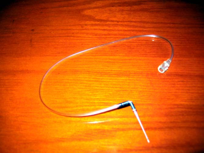 4)将输液管针头插入墨盒透气孔中,使用AB胶固定四个地方,一是输液管针头插入墨盒处,二是输液管针头所在的细软管和粗软管套头连接处,三是软管插入橡胶塞子处,四是小针头插入橡胶塞子处。这四个地方必须确保密封,不漏气,否则,以后就会出现软管中进入空气,打出来的资料字体断线、空白等情况。