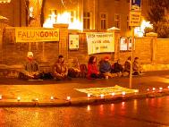 【明慧网2005年1月11日】捷克法轮功学员于新年前夕聚集在布拉格的中使馆前,就像全球各地的法轮功学员一样,利用节庆在当地的中使馆前举行和平请愿。布拉格的学员以烛光纪念因信仰真、善、忍法理而在中国大陆遭迫害致死的同修。