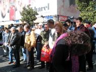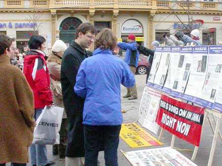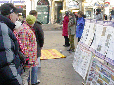 许多旅客对这个活动拍照,以回家和朋友去讲这个讯息。来自欧、亚各国的旅客都想要了解这场迫害。他们听学员讲述或阅读简介材料获知真象后,都表示了他们对法轮功的支持,并在要求终止这场迫害的文件上签名。