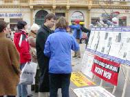来自全球各地的游客经常选择在温塞斯拉广场(Vaclavske Square)的圣瓦斯拉夫(St. Vaclav)雕像作为集合会面地点,法轮功学员们于新年前夕在雕像附近设置展板,以使更多的人们了解有关在中国江氏集团对法轮功的迫害真象。