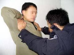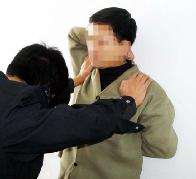 这时绿园分局一名大队长指使一名恶警,按住李智泳的双肩来回揉动,此酷刑称为“揉面”,并扬言铁齿钢牙也想办法给撬开。(以下图片为法轮功学员重组当时迫害的情景)