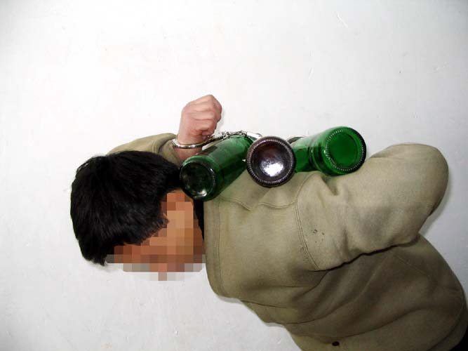 ![]() 示意图3: 背铐加三个酒瓶子 |