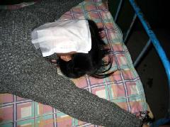 恶警们又换了新招,用酒店的餐巾纸沾上水一张一张的往班慧娟脸上铺平不通气。第三张时,气上不来,第五张的时候,看班慧娟不动了,不知过了多长时间,它们怕班慧娟死了,拿下来了,又铺,又拿,不知多少次(演示图2、演示图3)。