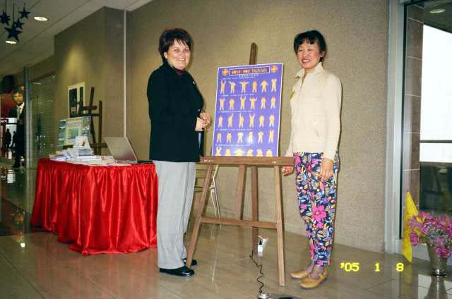 【明慧网2005年1月12日】2005年1月8日早上,我们又如约来到了曾经洪过法的商场。因为商场经理哈莱女士说:“如果你们愿意的话,每周都可以来这里长期洪法,这个位置就留给法轮大法了!”我们当然愿意,于是就来了。