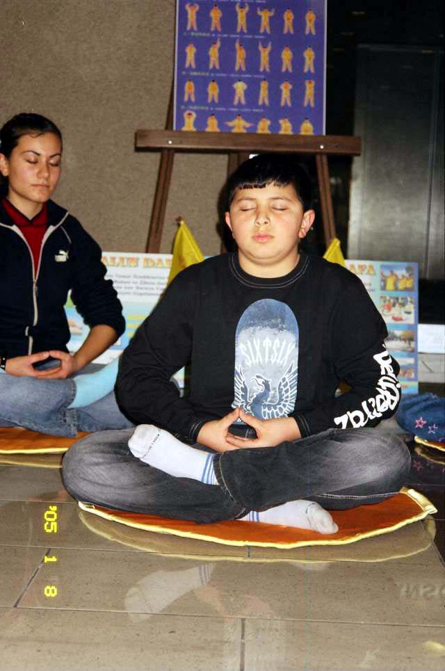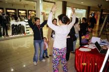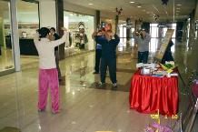 在这个商场得法一个月的新学员在炼功。他们都知道了真象,相信大法好,表示鄙视这个恶魔(江××);都议论说这个人(江)有点不正常;他们坚信做坏事的人一定会得到惩罚,都为死难的大法弟子痛心、难过。新学员们主动参与洪法教功,做得很好。