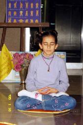我与她合影时告诉她,我要把我们的照片放到大法弟子办的网页上,并告知我师父你的善举,他会很高兴的。她听后脸上顿生敬意,严肃又美好的说:“噢!那太好了!请代我向他问好!”她敬重的走到师尊的炼功图示像前,于是我们拍下了这张照片。