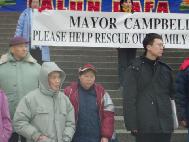 【明慧网2005年1月13日】2005年1月11日中午,加拿大卡尔加里法轮功学员在中领馆前集会,呼吁总理马田在访问中国期间,敦促中国政府停止对法轮功的迫害,并帮助营救被关押在中国劳教所遭受迫害的加拿大华人亲属。