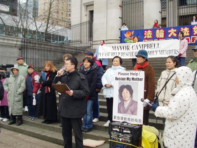 新闻发布会公告说,我们今天之所以对市长先生提出这个请求,是因为这种残酷的迫害已经持续五年多,而且仍在继续,并直接影响到市长属下的居民。有着民主、自由以及良好人权记录的加拿大官员,理应对中国这种严重漠视人权、残害自己国民的暴虐行为提出谴责,维护世界的和平与正义。