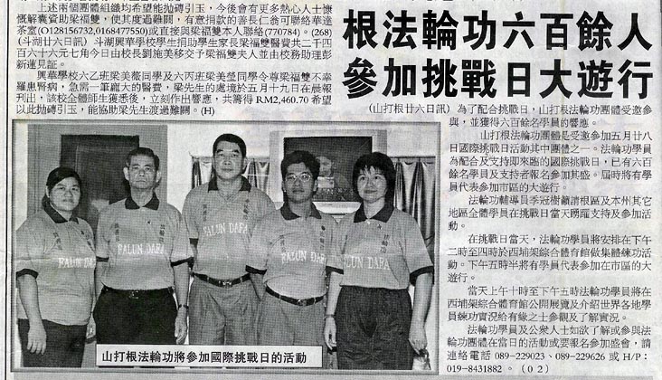 马来西亚法轮功学员国际挑战日洪法讲真象(图)