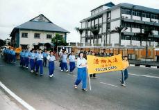 【明慧网2005年1月15日】马来西亚沙巴州山打根区法轮功学员的炼功点已坚持四年多了。他们良好及祥和的言行举止受到当地运动场主管的尊敬,并且受邀请参加2003年5月28日的国际挑战日(International Challenge Day)。约600余名来自沙巴州各地的法轮功学员及支持者参与了这项由山打根市议会主办的活动。