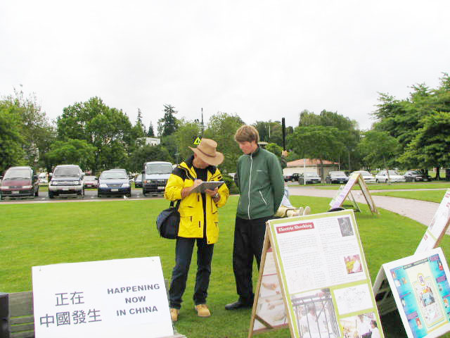 【明慧网2005年1月18日】2005年伊始,元旦过后,新西兰北岛法轮功学员继北部洪法之后,又到奥克兰以南,进行了为期4天的洪法之行,沿途学员举办了反酷刑展、图片展,受到当地民众的关注,有5家媒体前来采访,其中一次是电台现场直播。