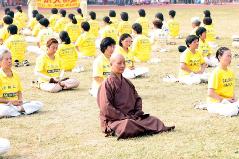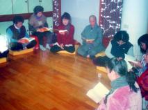 前阵子在佛寺内开法轮功九天学习班,几位出家人与居士们共同聆听师父讲法,最近更与附近的炼功点每周定期在佛寺内成立学法读书交流会,并在门前挂着“法轮大法是正法”及“法轮大法好”横幅 ,不禁让人想起师父《洪吟》的《游悬空寺》中诗句:“他日法正万寺传”。