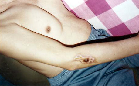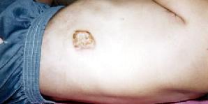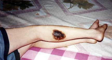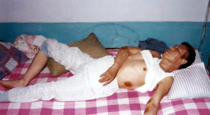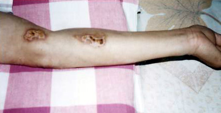 我们向世人讲真话,按“真善忍”做好人错了吗?我们没有犯法为什么拘留我们?所以第二天(4月26日)我绝食抗议,610把我们分散开每个号放一个人,用刑事犯迫害大法弟子。这真是黑白颠倒、好坏不分啊!绝食第三天,就开始给我们强行灌食、盐水,折磨我们。13天中强行灌食4-5次。直到我被折磨的休克,被送到医院已人事不省了。我儿子半夜来医院看我,管教不让看。把他赶走说:你的消息这么灵通呢?走走……他们把我放在冰冷的木板床上,我已经失去了知觉。恶警又让抬我去医院的刑事犯董某某用滴流瓶灌上开水放到我身上,使我身上8处被烫伤。到现在2年过去了,疤痕还在(有照片)。