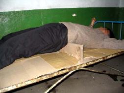 王君成:2003年10月27日下午因绝食抗议及向监狱党委写信要求公正对待大法弟子,被押入小号,上固定床(一种残酷刑罚,见图示),至12月初才被放下,固定了30多天。