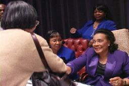 今年的亚特兰大市马丁-路德-金系列纪念活动是从1月13日上午由马丁-路德-金精神复兴组织在埃伯奈萨新教堂举办的第二届人权会议开始的。这次会议除了多位来自全美著名的民间人权组织人士发言之外,还邀请了法轮功学员陈刚先生。他讲述了他在中国由于修炼法轮功而屡次被中共江氏集团关押迫害,以及在北京团河劳教所超过18个月、几乎被酷刑折磨致残、致死的悲惨经历,最后经过美国政府及法轮功学员的营救来到了美国。他特意在此感谢金博士夫人为营救在中国受迫害的法轮功学员所做的不懈努力。