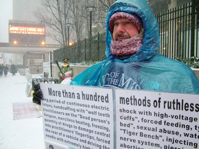 不同国籍的法轮功学员曼哈顿街头冒风雪讲真象(图)
