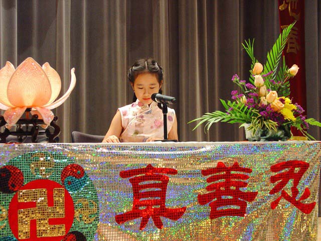 一位学员讲述了在纽约讲真象的一个月期间,她是如何在那个不同的修炼环境中发现了自己的执著心,与同修互相学习,共同证实法的经历。还有老妈妈向大家介绍她坚持向北京发传真讲真象的经验。一位九岁的小弟子汇报了她在修炼中提高心性和讲清真象的体会,童真的话语和对大法的坚定获得全场热烈掌声。另有一位讲师谈到了他几年来以诗歌创作的方式证实大法、讲清真象的历程。还有媒体组和文艺组的学员也交流了各自工作项目方面的修炼心得。