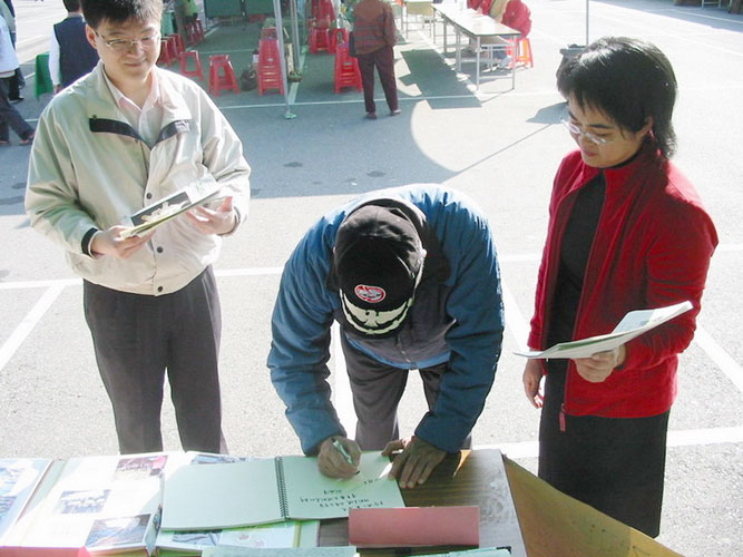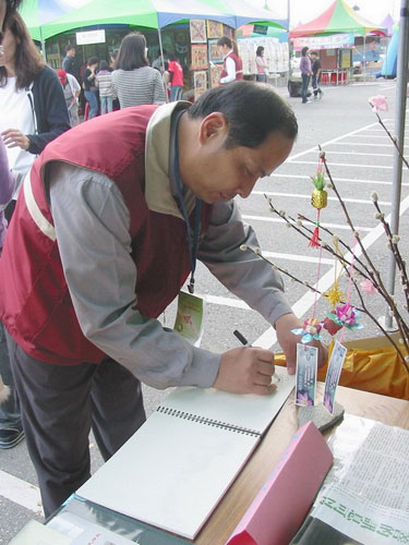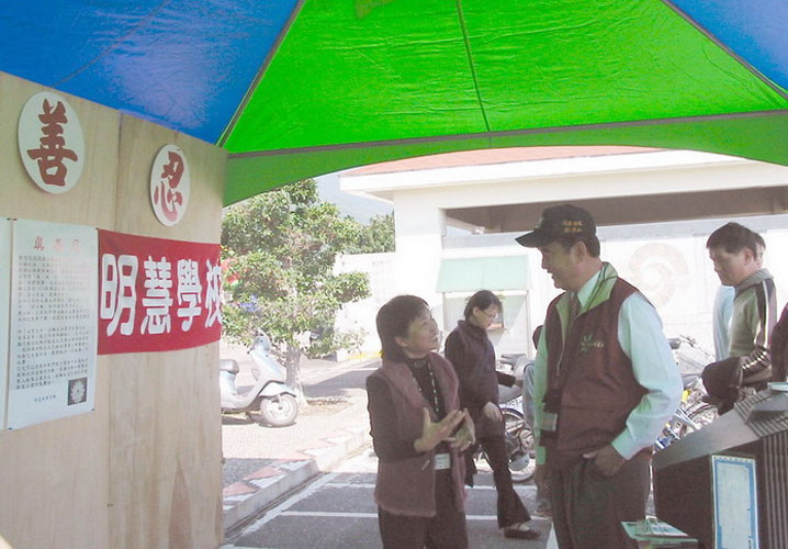 活动期间,法轮功学员主动向与会的花莲县县长谢深山介绍法轮大法及明慧学校,谢县长很高兴的收下大法资料,并说:“法轮功好”。花莲县教育局长张志明、副局长邓明星及许多教育界人士等,纷纷签名肯定明慧学校的教学理念。四维高中校长黄英吉主动与学员合影留念。博览会活动组瑞北国小校长李国清于活动结束后,特别感谢明慧学校的参与展出。