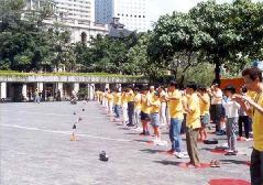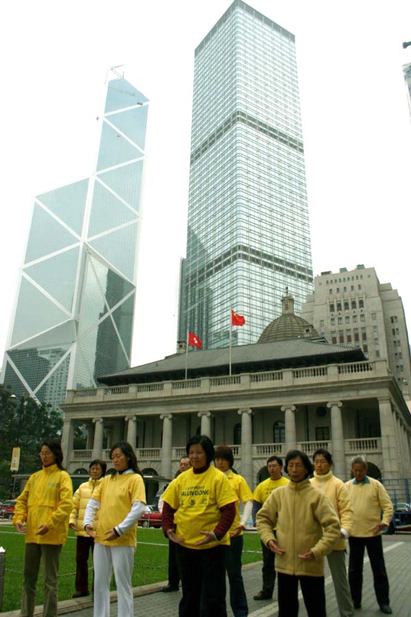![]() 香港学员炼功 | ![]() 香港学员在遮打花园炼功 |