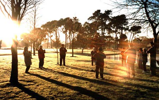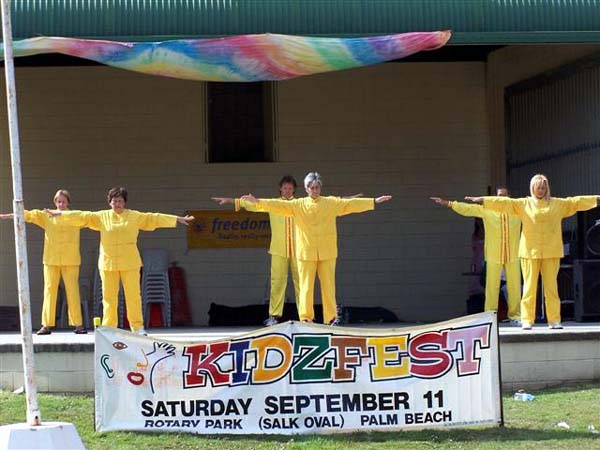 ![]() 澳洲学员集体炼功 | ![]() 澳洲塔省候巴特市--功法演示 |