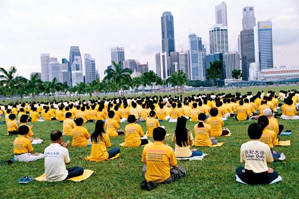 ![]() 澳门学员炼功 | ![]() 新加坡学员集体发正念 |