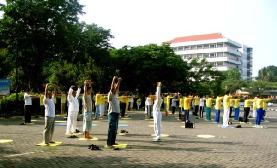 ![]() 马来西亚学员集体发正念 | ![]() 印度尼西亚学员炼功 |