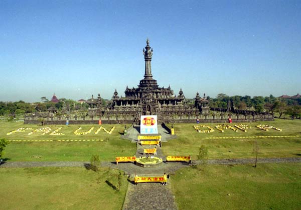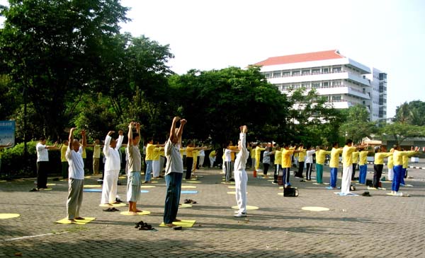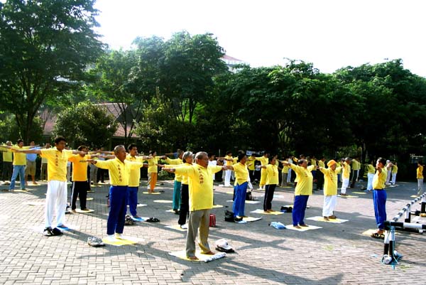 ![]() 印度尼西亚学员炼功 | ![]() 印度尼西亚——法会期间炼功排字 |