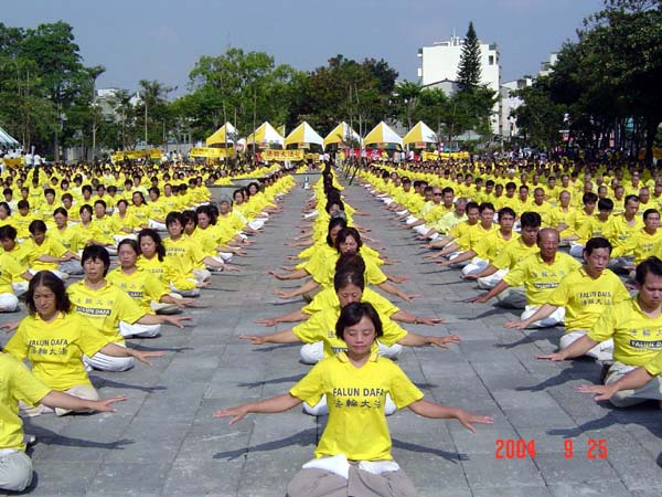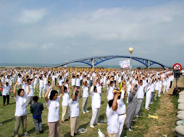 ![]() 台湾澎湖县政府前广场炼功 | ![]() 台湾澎湖集体大炼功 |