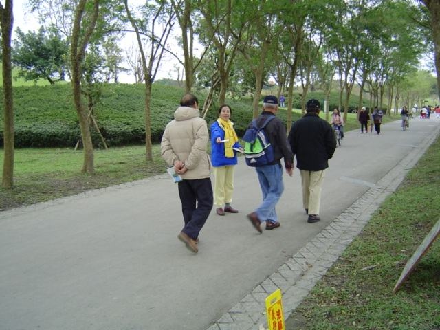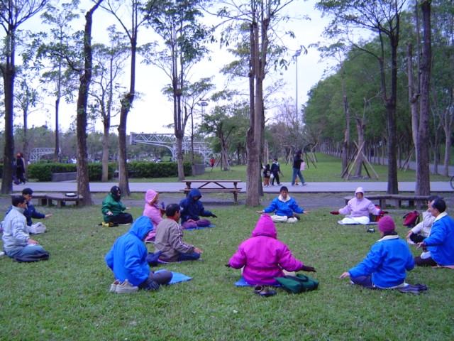 2005年1月1日,十数位宜兰法轮功学员利用元旦假期下午在罗东运动公园炼功洪法。岁末的一股强烈寒流笼罩着原属亚热带的台湾,学员们无惧低温袭身,精神抖擞的炼功与洪法发资料,向民众展示法轮大法“真、善、忍”的祥和美好。平日人潮汹涌的园区,虽因天气因素而游客锐减,学员依旧热情和善的向过往的游客介绍法轮功真象。