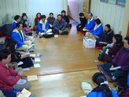 学员们除了交流李老师该次讲法谈到的加大力度讲清法轮功受迫害的真象外,也分享了许多近期修炼体会。宜兰郭小姐提到她如何克服怕心、逐渐熟练用电话向对岸大陆同胞讲真象的心得:秉持着让对方知道真象的善心,她不气馁的一通接一通的打电话,用平和温暖的语气传达修炼后身心升华的美好。
