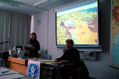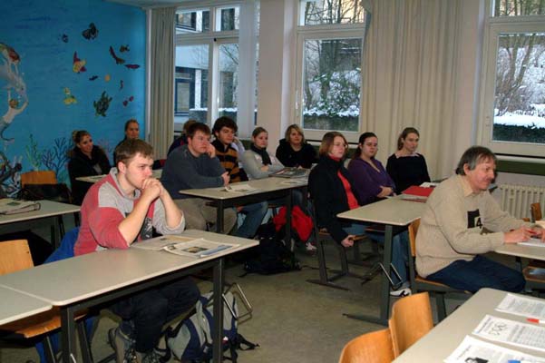 ![]() 校方负责教师,瑞姆先生(Roemer),法轮功学员开始报告会 | ![]() 报社记者坐在前排详细纪录报告会 |