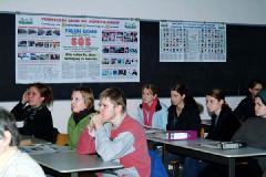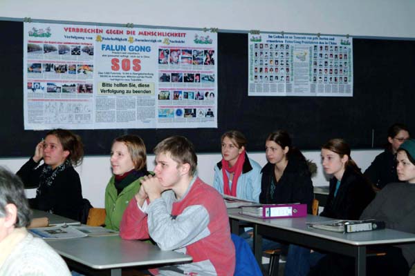![]() 同学们专注的听着报告会 | ![]() 法轮功学员讲述法轮功真象及正在中国发生的残酷迫害 |