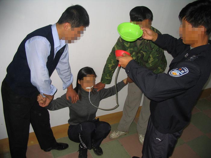 【明慧网2005年1月4日】2001年4月,张卜元在与同修向长春运送真象资料的途中,被出租车司机举报,关押于长春铁北看守所。期间因绝食抗议遭野蛮灌食,由几名女刑事犯按住手、脚,捏住鼻子,用牙刷横在两齿间,一名刑事犯用膝盖压在胸口,令张卜元在被动呼吸间灌入由碎馒头或玉米面加大量盐和汤做成的食物。(图1)