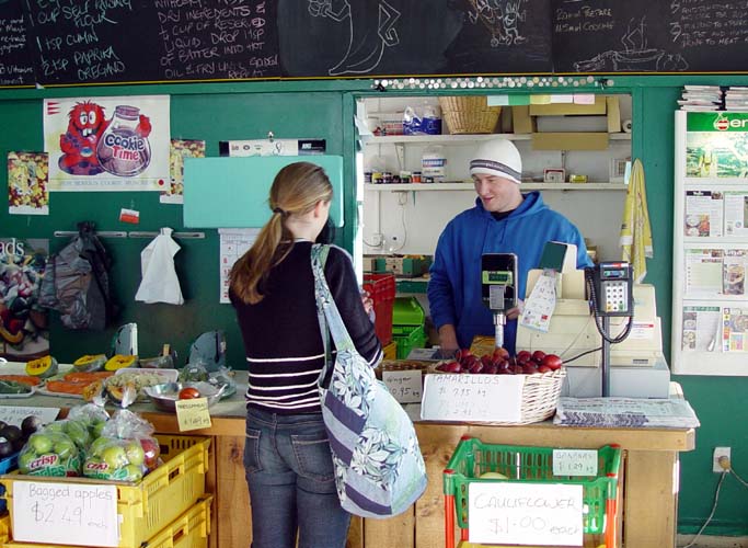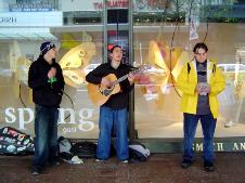 ![]() 小虎在果菜摊,边工作,边讲真象;还在摊位上放了大法的真象资料以及报导大法真象的报纸 | ![]() 二哥(右一)与其他南岛学员在讲真象 |