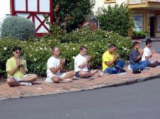 ![]() 二哥(左一)与其他南岛学员在发正念 | ![]() 南岛学员参加社区游行 |