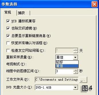 2、打开后如(图3)点设置和选项,选第一个“参数选择… F6”(图4)的“重新采样质量(R )”要选”最佳”。