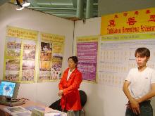 为了参加博览会的洪法活动,许多学员重新调整了自己的工作时间;几位刚得法不久的西人新学员也主动前来,加入洪扬大法的行列。一些学员精心制作了几百朵美丽的纸折莲花,莲花的中心写着:“法轮大法好!”,以及法轮功相关网站的地址。