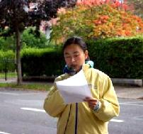几位法轮功学员先后用中文,英文宣读了《公告》。《公告》指出:“逆天意而行的中共统治摇摇欲坠,迫害难以为继。对邪恶的最终审判越来越近。然而,大法的传出就是为了救度世人,包括社会各阶层的人士。即使曾经做过错事的人,也还有机会弃恶从善。”