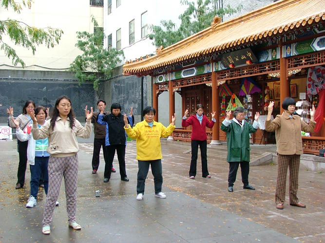 ![]() 法轮功学员在炼功 | ![]() 支持营救受迫害法轮功儿童的人们排起了长队 |