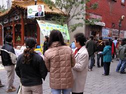 五年以后的今天情况就大不一样了,很少再有中国人绕开法轮功学员走,一些人不只接过了揭露法轮功被迫害的小册子,而且还在下次经过的时候向她们要新的材料。另一些中国人操着不熟练的德语,向玛丽亚娜提出了一个又一个的问题。玛丽亚娜看得出,他们不是初期那种挑衅性的提问题,而是他们真的想知道真象。她就尽量的说慢一些,让他们能够听懂。