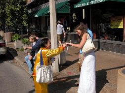 法轮功学员在奥克兰向夏德仁递交法庭判决书